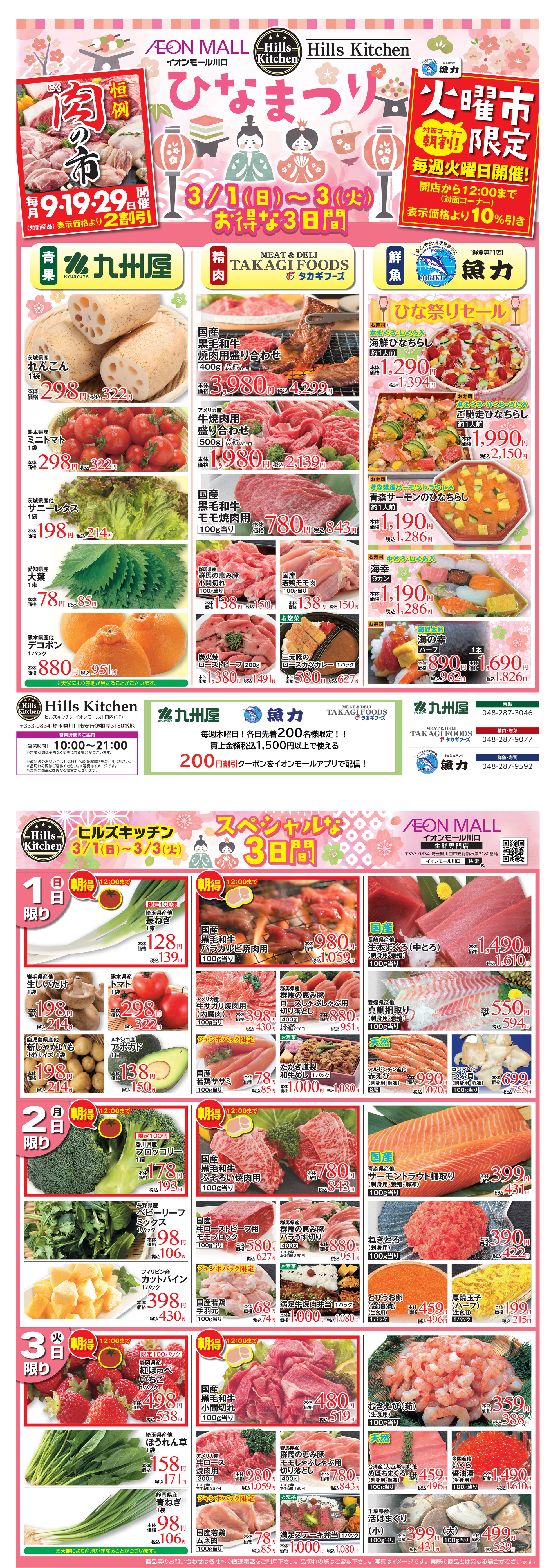 ヒルズキッチン お得な3日間!3月1日(日)~3月3日(火)